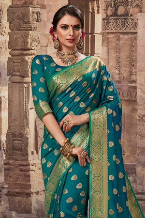• Peacock Blue Zari Woven Beautiful South Silk Saree