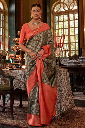 Coral Peach Kanjivaram Saree