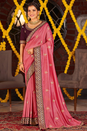 • Charm Pink South Silk Saree