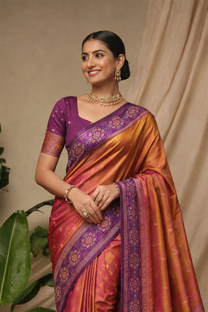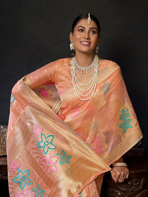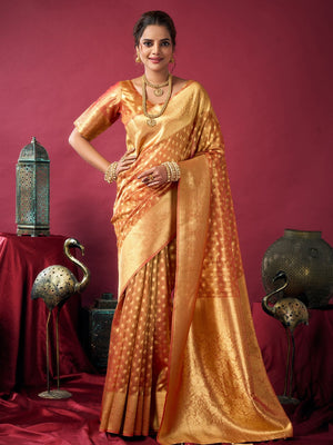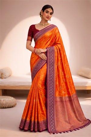 Orange Tissue Silk With Weaving Silk Saree With Zhallar Saree With Blouse Piece