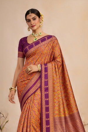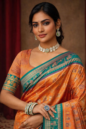 The orange sarees in traditional variations like Banarasi saree, Kanjivaram saree, Paithani Sarees and Patola Sarees are a great display of different styles around the country. The sarees are perfect for any festive occasion.
