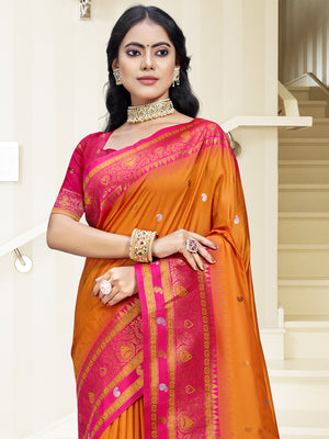 The orange sarees in traditional variations like Banarasi saree, Kanjivaram saree, Paithani Sarees and Patola Sarees are a great display of different styles around the country. The sarees are perfect for any festive occasion.