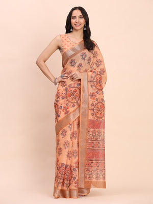 Orange Crepe Georgette Gold Foil Embellished Printed Saree With Blouse Piece