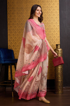 The fancy organza sarees have elegant designs and are comfortable to wear. The comfortable fabric and beautiful designs are the perfect combinations for parties. Fancy organza sarees include printed sarees that have embellishments or can be with plain designs.