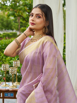 Considered one of the best combinations, Organza silk sarees (ऑर्गेंजा सिल्क साड़ी) offer a perfect blend of modern and traditional Indian styles making them a versatile choice for various kinds of events. These sarees have a beautiful silk shine along with the comfort of organza fabric.
