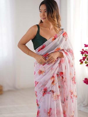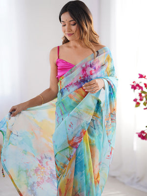 Organza Sarees with floral patterns, geometric prints and motifs have become a trend of their own as they showcase the beauty of the fabric and have a delicate elegance that comes from the beautiful prints on the organza saree. Printed sarees are adored by women as they are lightweight in comparison to embroidered sarees and are cheaper yet have the same level of beauty and elegance.