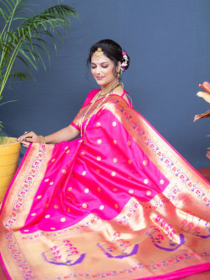The paithani saree has found its way into the hearts of women around the country with its colourful motifs and rich design. The amazing thing about these sarees is how elegant they are and their rich look perfectly makes use of the vibrant colours of the saree which makes the saree a versatile look for various occasions.