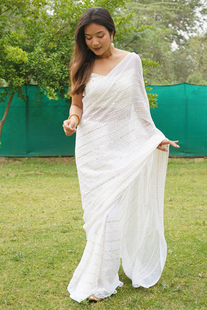 • Lemon Yellow Georgette Saree With Blouse Piece