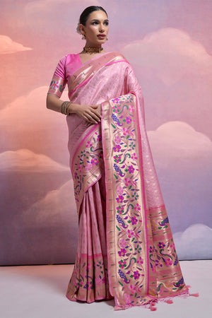 Light Pink Tissue Silk Adorned With Gorgeous Woven Butta Saree With Blouse Piece