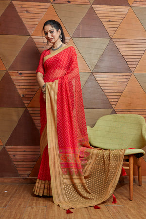 • Scarlet Pink Georgette Saree