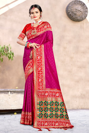 • Taffy Pink Patola Silk Saree