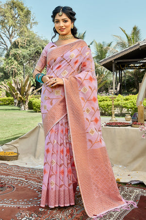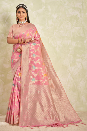 • Taffy Pink Banarasi Saree