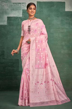 • Taffy Pink Cotton Silk Saree