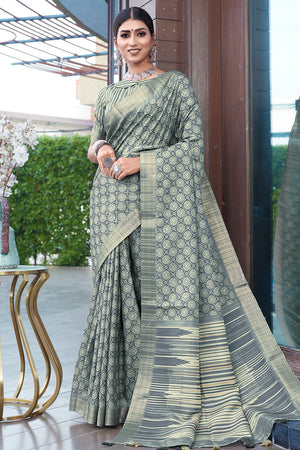 • Sage Green Digital Print Saree