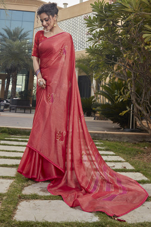 These sarees are known for their flowy fabric and delicate designs. They come in a range of pink shades and are perfect for the bride who wants to look graceful.