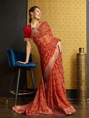 Printed sarees, with the right prints, have the potential to look great in any colour, and red is no exception. Printed sarees are versatile in a number of ways.