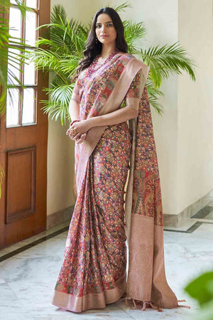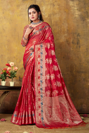 Light Coral Red Banarasi Khaddi Georgette Saree