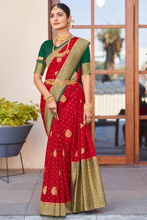 Red wedding sarees are a classic choice for brides in India and around the world. The color red symbolizes love, passion, and happiness, making it an ideal choice for brides on their special day. With its rich and vibrant hue, a red bridal saree adds an element of sophistication and elegance to your look. Whether you prefer a traditional Banarasi saree or a more modern style, there is a red wedding saree to suit your taste and style.
