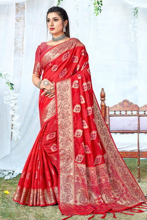At Karagiri, you can find a wide range of red bridal sarees online. Whether you're looking for a classic Banarasi saree or a more modern style, we have a selection of beautiful and high-quality red wedding sarees to choose from. With our easy-to-use website and secure payment options, you can buy your dream red bridal saree with ease. Browse our collection today and find the perfect red wedding saree for your special day!