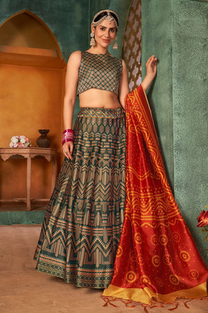 • Green Designer Lehenga Choli (Semi-Stitched)