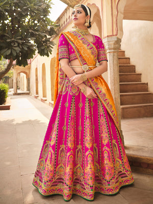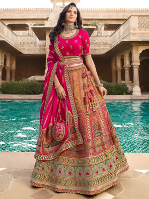 • Hot Pink Banarasi Silk Lehenga