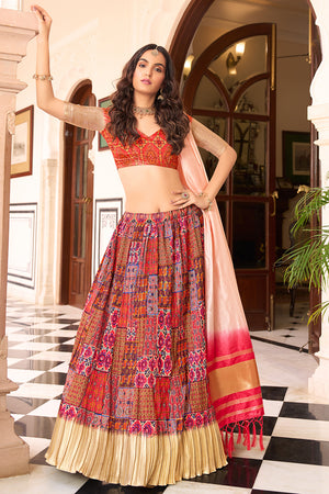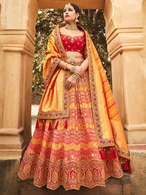• Orange And Red Lehenga Choli