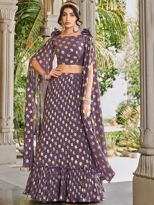 • French Violet Designer Lehenga Choli (Semi-Stitched)