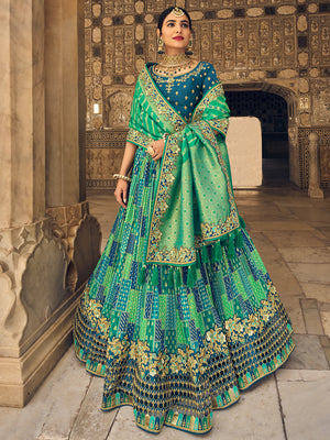 • Blue And Green Lehenga Choli