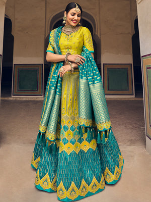 • Green And Yellow Lehenga Choli