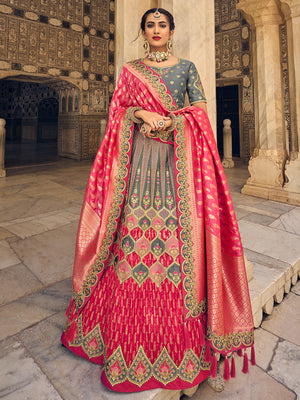 • Deep Pink Banarasi Silk Lehenga