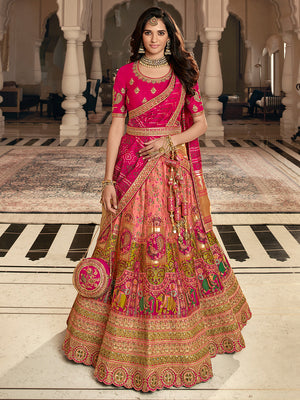 • Pink And Orange Lehenga Choli