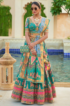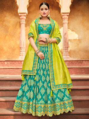 • Teal Green Silk Lehenga Choli (Semi-Stitched)