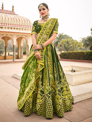 • Army Green Silk Lehenga Choli