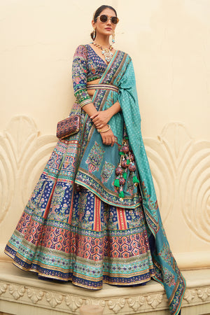 • Blue Fancy Silk Lehenga Set