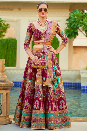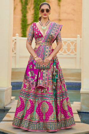 • Magenta Pink Silk Lehenga Choli