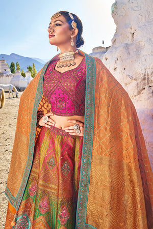 • Orange And Pink Silk Lehenga Choli