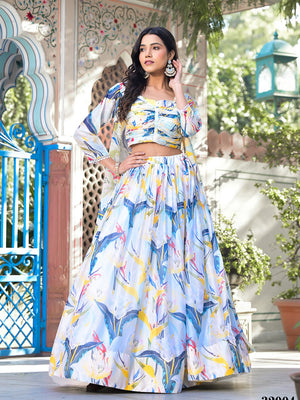 • Sky Blue Fancy Silk Lehenga Set