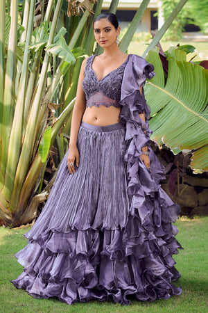 • Lilac Purple Silk Lehenga Choli