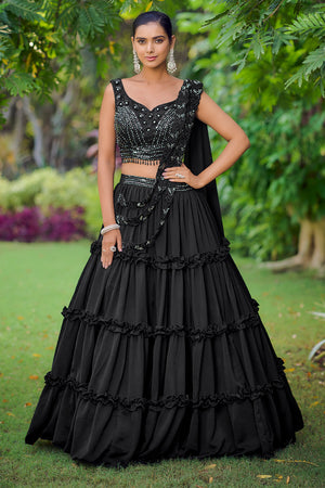 • Black Fancy Silk Lehenga Set