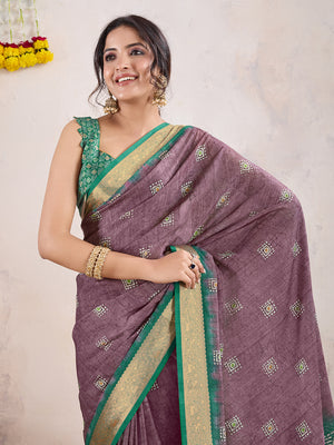 Mintgreen Pure Cotton Lucknowi Woven Printed Saree With Tassels Saree With Blouse Piece