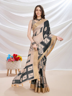 Blue Crepe Georgette Gold Foil Embellished Printed Saree With Blouse Piece