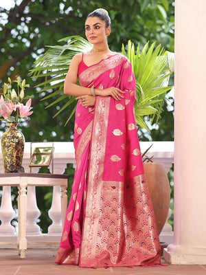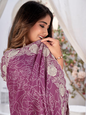 Peach Silk Chiffon Viscose Border Floral Printed Saree Saree With Blouse Piece