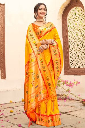 Mustrad Yellow POORVIKA SILK VOL 1 Pochampalli Silk Saree with Blouse Piece