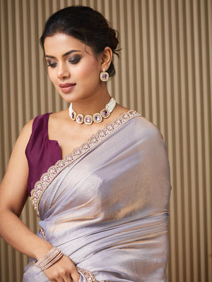It's important to remember that one should go for gold jewellery for saree having a golden undertone or golden work, and one can go for silver, diamond or even pearl jewellery for saris having a silver undertone or silver work.