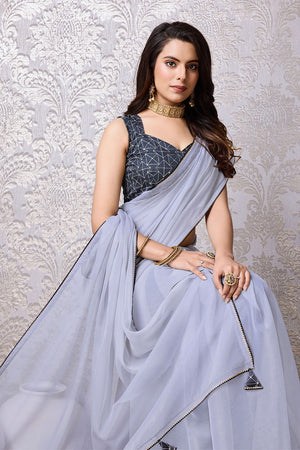 Banarasi Crush Lace Border Saree With Sequins And Cording Embroidery Work With Blouse Piece