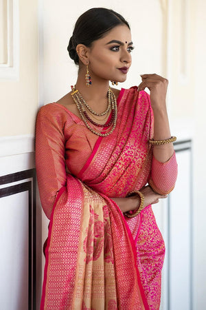 • FENIL URMIGAR in Ruby Pink Banarasi Khaddi Georgette Saree