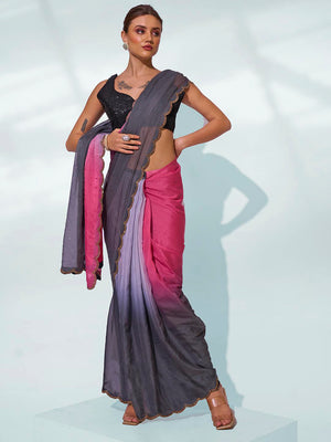 • Ombre Organza Party Wear Saree With Blouse Piece