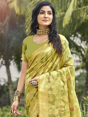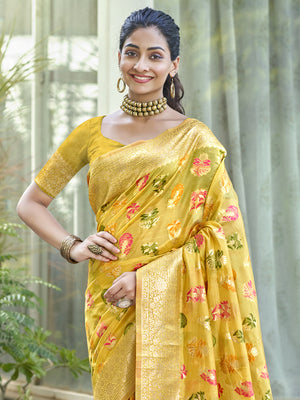 • Mustard Organza Party Wear Saree With Blouse Piece