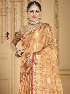 • Solid Tissue Saree with Hanging With Blouse Piece
