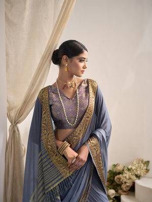 • Crepe Silk Banarasi Saree With Blouse Piece